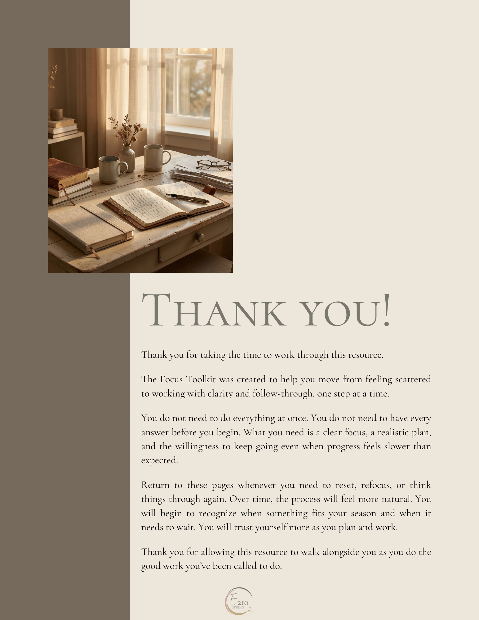 E210 Studio offers simple, encouraging tools to help you walk in what God has prepared for you. Our shop is for people who are serious about faith, follow-through, and finishing strong.